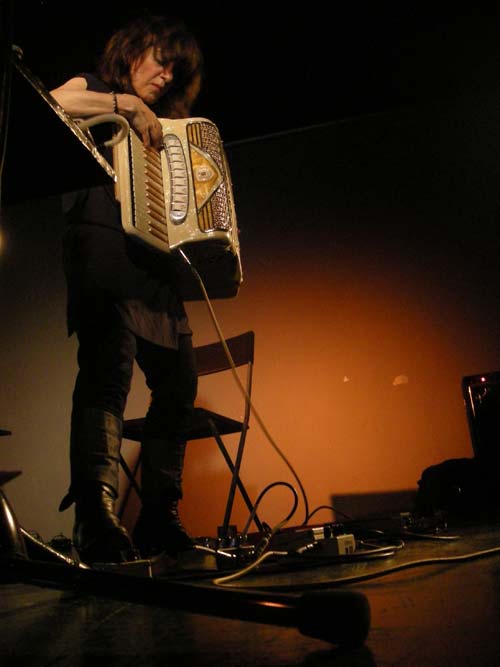 Andrea Parkins est une artiste sonore basée à New-York qui compose et improvise sur l’accordéon traité électroniquement. Depuis le début des années 80, elle travaille le son de l’accordéon avec différentes sources électroniques analogiques qui fragmentent la syntaxe traditionnelle de cet instrument populaire. En concert, son approche de la «boîte à soufflets» entre en collision avec la puissance polyrythmique de son jeu de clavier et un travail original d’échantillonnage sonore.