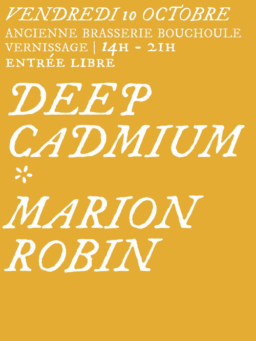 > DU VENDREDI 10 AU DIMANCHE 12 OCTOBRE | 14h – 19h | Entrée libre | Ancienne brasserie BouchouleDEEP CADMIUM