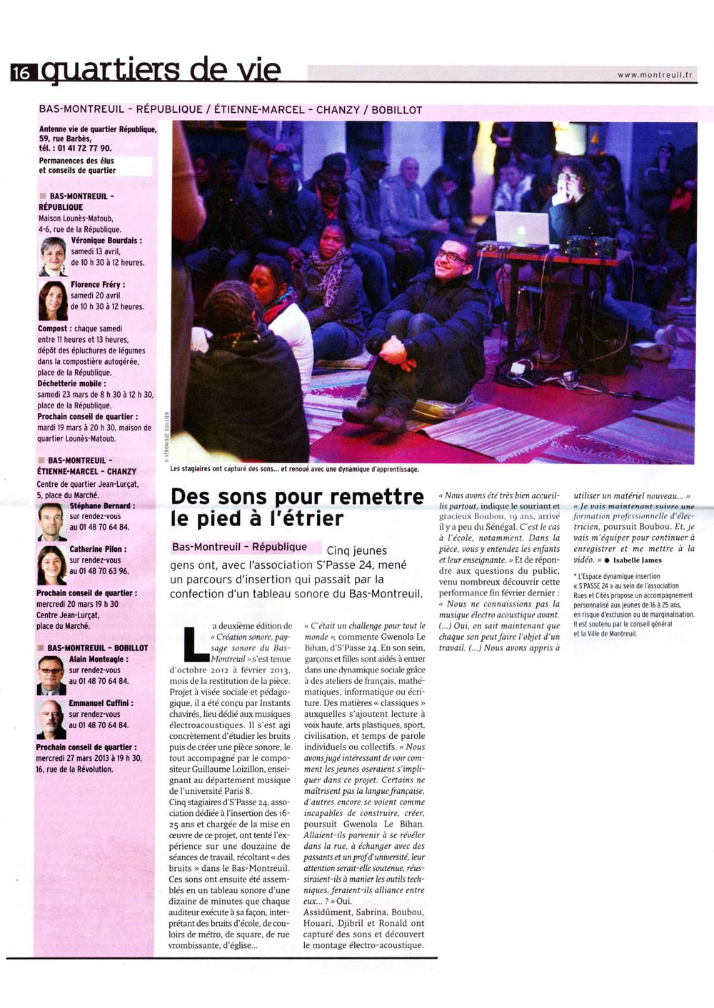 Article paru le 19 mars 2013 dans Tous Montreuil sur l'atelier de création sonore