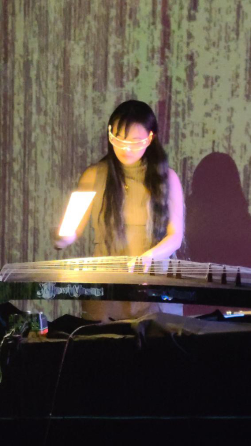 Yellow Wasabi, biologiste évolutionniste et artiste des nouveaux médias à Paris, combine la science et l’art pour rechercher la position humaine dans l’industriels numérique et le paysage écologique. Elle utilise des programmes informatiques et modules biologiques pour innover le Guzheng, la harpe chinoise traditionnelle ; elle façonne le son par la capture de mouvement d’IA et les projections interactives. Le bruit de la vie est transformé en fossiles immatériels de la cognition qui résonnent avec l’expérience émotionnelle du public, improvisant collectivement pour créer un espace inclusif.